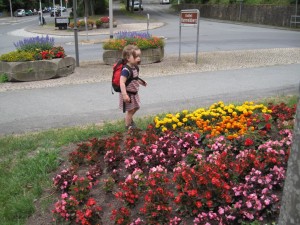 Ferien til Goslar – dag 2 » Ellen ser på blomster og bier mens vi andre leder efter cachen.