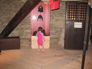 Ferien i Goslar – dag 4 » Ellen kigger på hjelme.