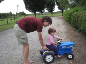 På besøg hos mormor og morfar » Traktorkørsel – hun kan ikke helt nå pedalerne endnu