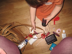 Vi havde ikke lige fået nok legetøj med – så ungen tog mors taske…