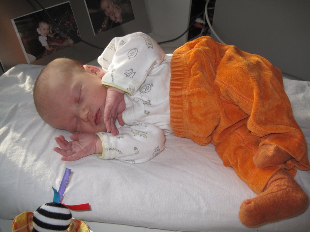 Sovende på mors skrivebord