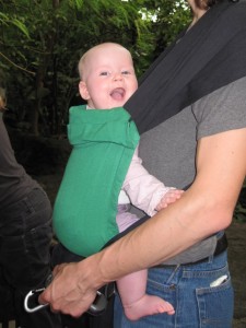 Regnskoven og svømmehallen » Glad Karen på fars mave