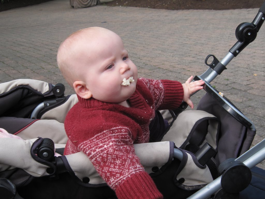 Lige før jeg nåede at tage billedet, havde hun to lange brødkrumme hængende ned i hver mundvig.