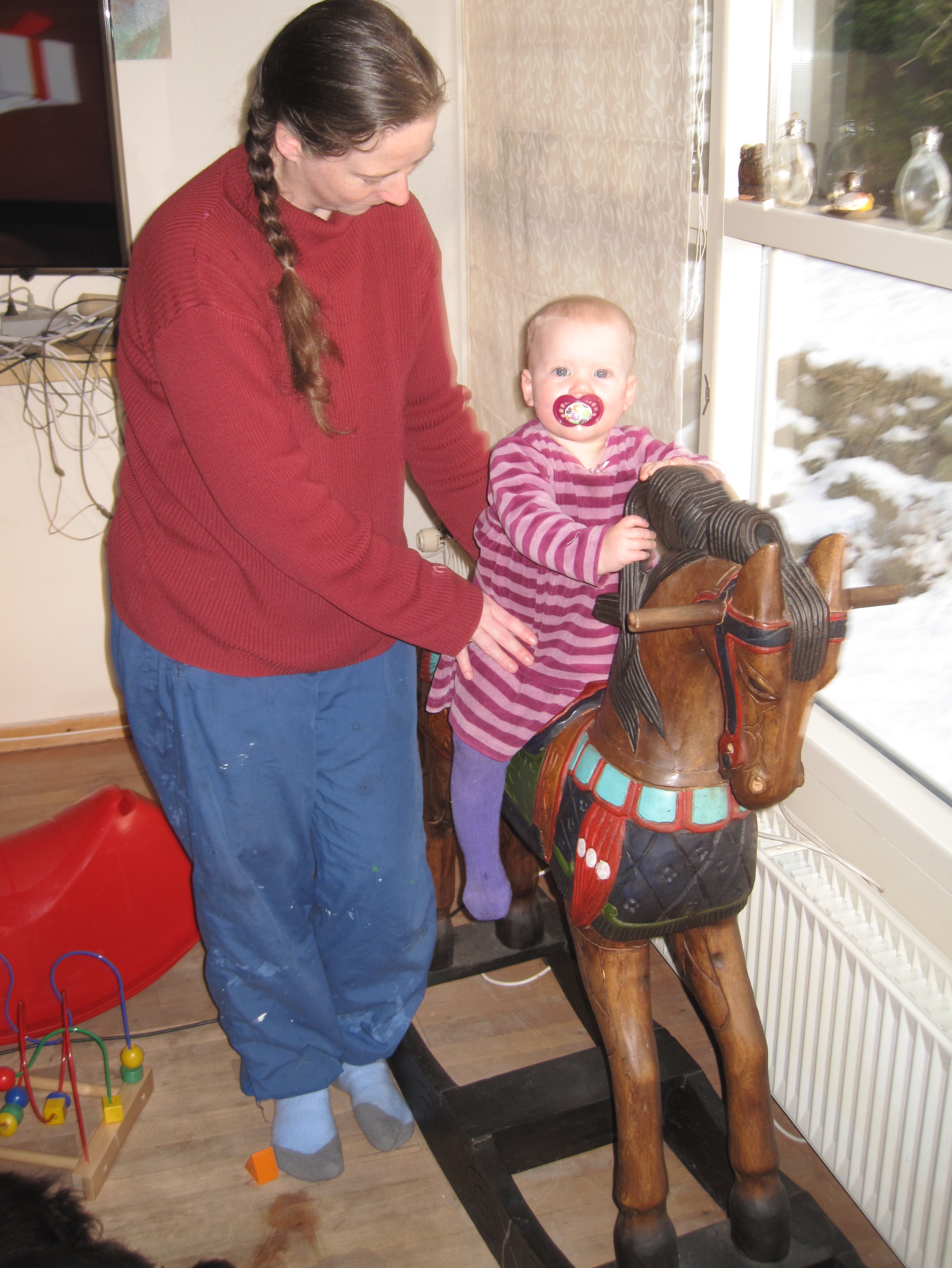 Første tur på gyngehesten