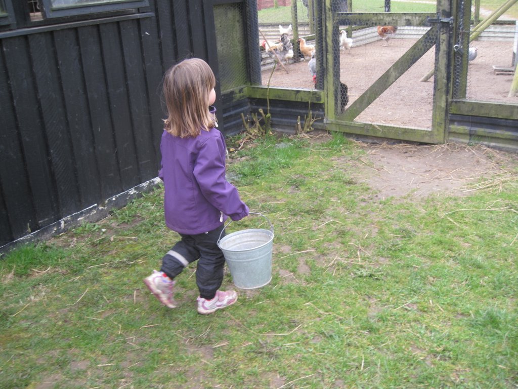 På vej ind for at fodre høns