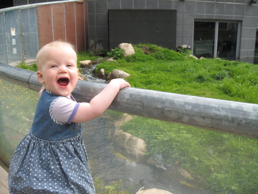 De sov godt nok, men det var alligevel sjovt at gå rundt ved rækværket.