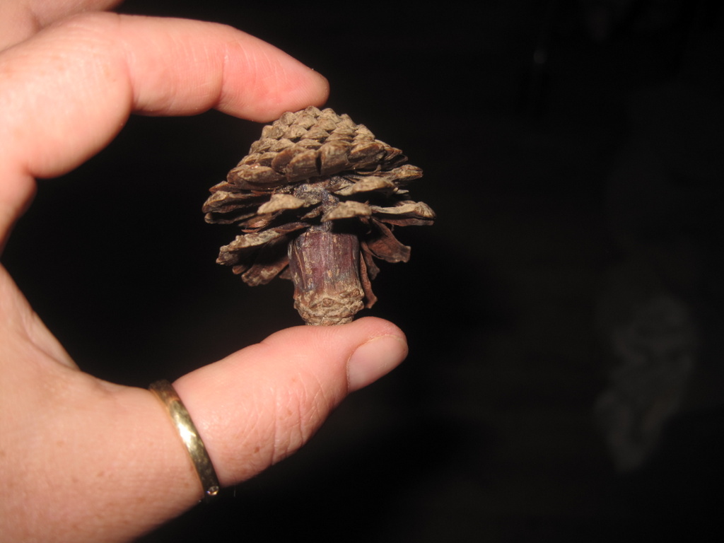Ellen var med børnehaven i skoven og fandt denne svampekogle på vejen hjem. Moderen er glad for barnets fantasi.
