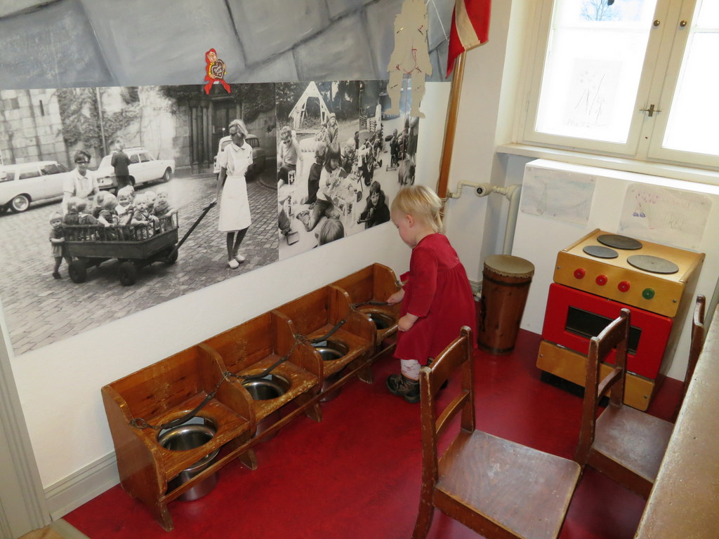 Karen synes det var sjovt at se, hvordan en vuggestue så ud tidligere.