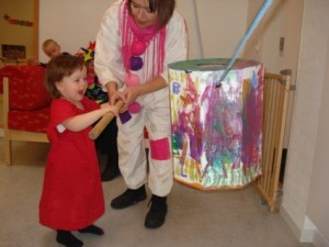 Ellen slår på tønden – godt hjulpet af Bente.