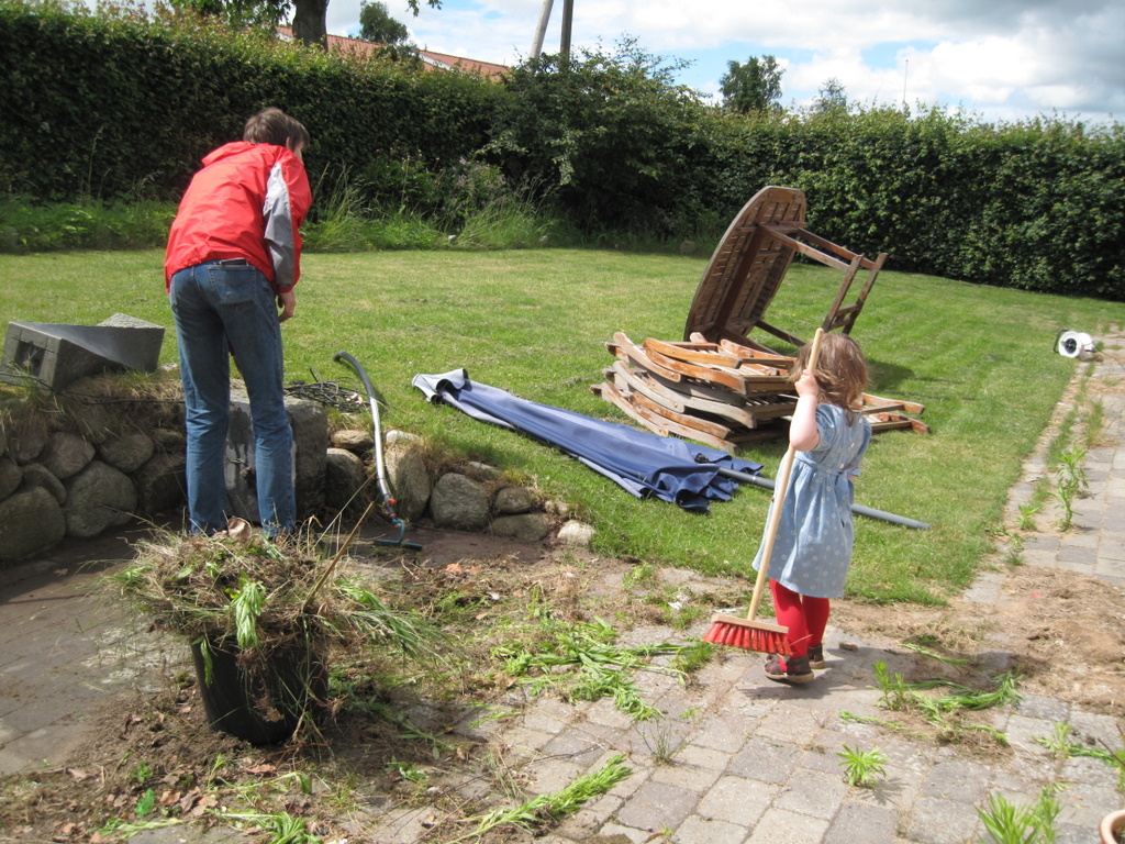Ikke noget nyt » Far fejede, så Ellen skyndte sig at hente sin kost for at hjælpe.