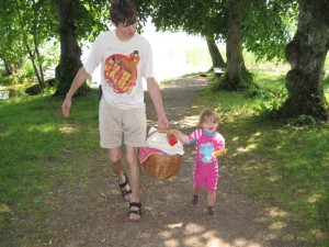 Klipning og sommerdag ved Fussingø » Madkurven bæres tilbage.