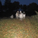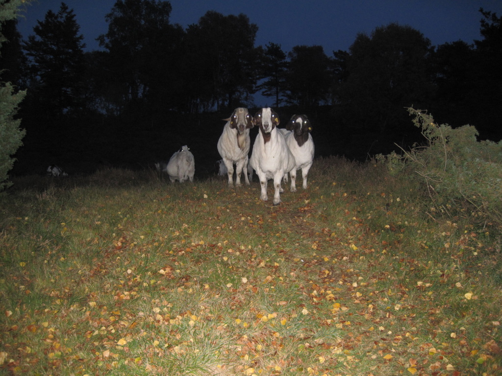 Her til aften kørte vi ud for at sige godnat til gederne. Ellen gik glad med hele vejen op af bakken og vi kunne høre at vi kom nærmere og nærmere. Lige pludselig var der en ged der stak hovedet op over bakketoppen lige foran os. Og så kom der ellers gang i resten der gik ovre på en anden bakkeskråning.
