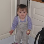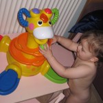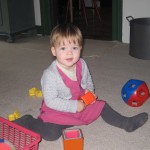 Den lille gøj snakker mere og mere – og det meste af det forståeligt. Tre ord sætter hun sammen nu og hun går og synger “sover du, sover du”. Det er godt nok det eneste af den sang hun kan, men det er sødt når hun synger.