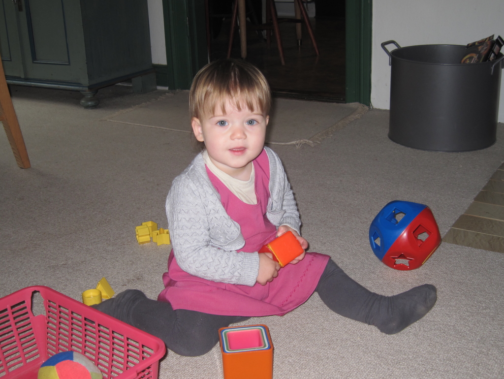 Fra morgenen af var Ellen lidt forvirret, for hvor var nu far henne? Men vi kom da op og kom afsted. For en gangs skyld virkede Ellen en smule betuttet ved at komme i vuggestue, men da jeg gik var hun allerede i gang med at lege.