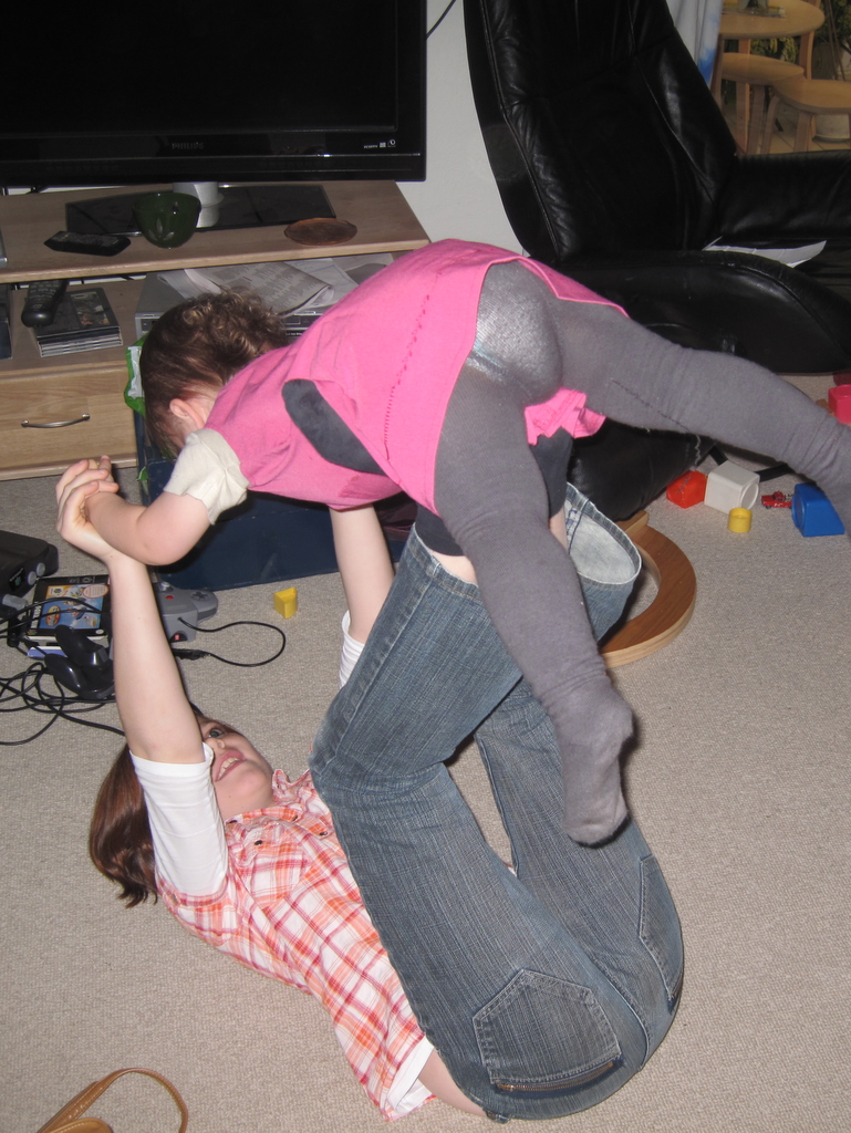I går fik hun øje på en reklame med et par bare bryster på min skærm. Hun pegede og sagde: Mor! Og så måtte man jo forklare lidt om forskellen på piger og drenge. 🙂
