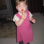 Til gymnastik var hun glad og legende, men hun gad ikke helt gå hjem – og da slet ikke FORBI skolens legeplads. Men hjemme ventede der andelår med rigtig sprødt skind. Ellen synes nu at det var bedst at få lov til at gnave benene. 🙂