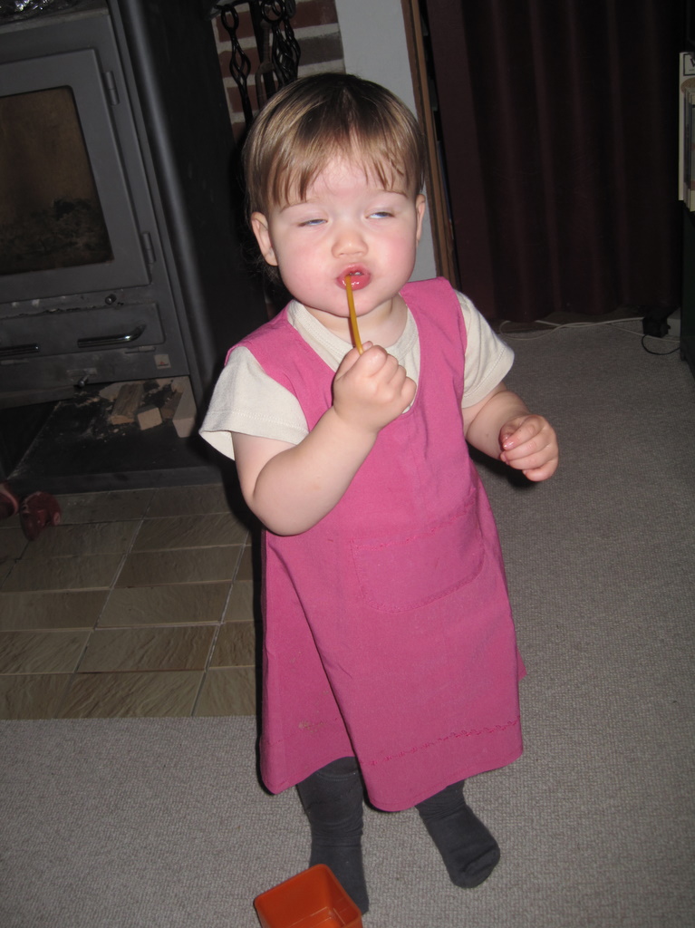 Nu har jeg lige puttet en skrigende gøj. Hun plejer at elske at få børstet tænder, men de sidste dage har hun ikke villet det. Og i dag var hun da helt umulig.