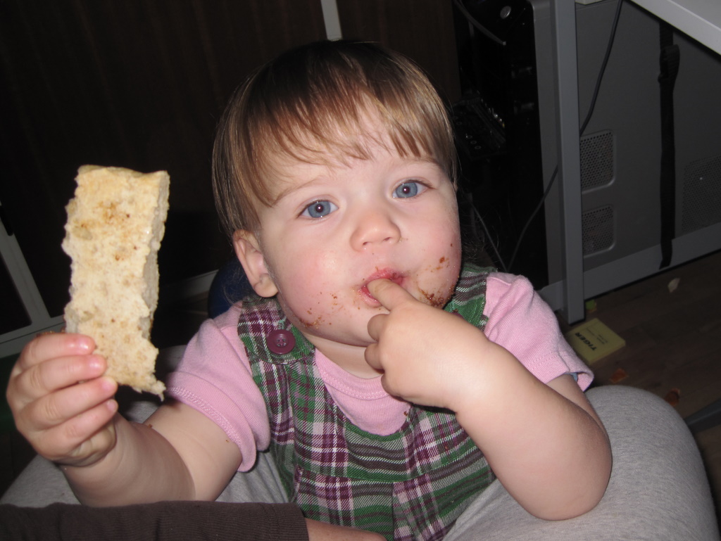Ellen havde godt nok siddet lidt længe ved bordet, fordi hun mente at man kunne nøjes med pålægget og lade rugbrøddet ligge. Men sådan spiller vi ikke, hverken hjemme eller i vuggestuen. Og til sidst havde hun da også spist sit rugbrød.
