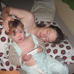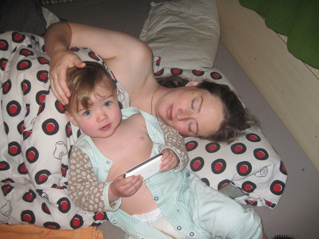 Efter at have sovet to timer mindre end normalt vågnede Ellen. Jeg var ikke lige klar til at skulle op, så jeg puttede gøjen og gik i seng igen i håbet om at hun ville sove videre! Optimistisk, ja, specielt da jeg åbenbart havde glemt at lukke siden på sengen igen. Så der gik ikke mange sekunder, før der var en der krøb op i sengen til mig.