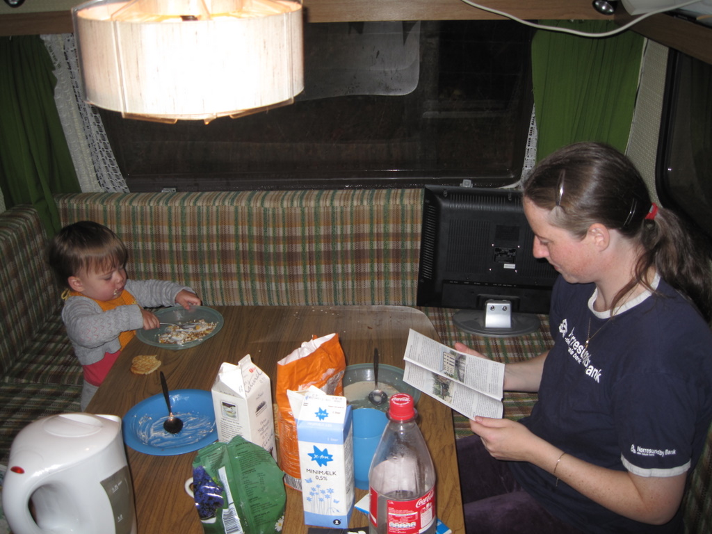 Og så var det puttesovetid for små gøjer. Det var vi lidt spændte på, men Ellen lagde sig bare ned og sov! Hun tog sig ikke det mindste af at vi sad to meter fra hende og spillede Yatsy og snakkede. Hun sov faktisk helt til klokken 8.45, så vi fik alle sammen en god nats søvn.