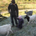 Ellen havde bestemt heller ikke taget skade af den hårdhændede behandling sidst. Hun gik trygt rundt mellem dem og det var kun når den stangliderlige buk kom i nærheden vi lige tog hende op. For tro mig, han var liderlig! Stakkels den ged der var i brunst, hun blev jagtet rundt.
