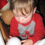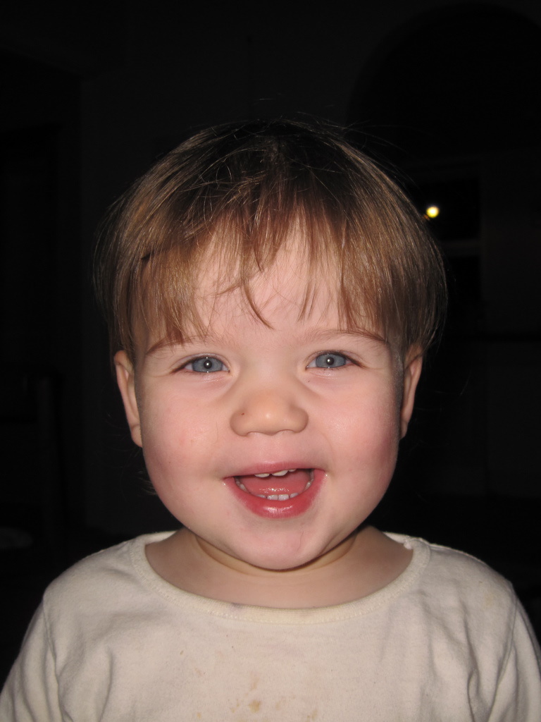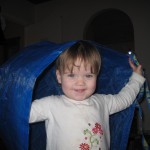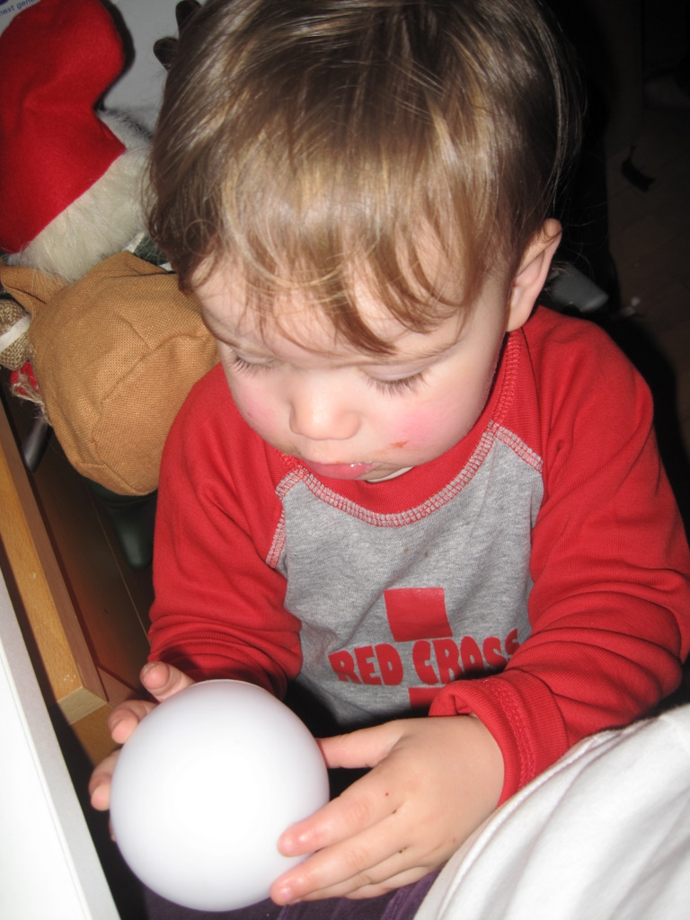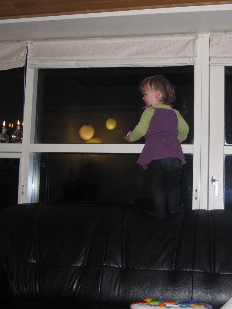 Der er godt nok tre natcaches deroppe, men efter de to første var Ellen ved at være godt træt, så vi kørte hjem igen. Hun snakkede og pludrede hele vejen i bilen – og på et tidspunkt må hun da lære at det er “en, to, tre, fire, fem” og ikke “en, to, fire, fem”. Da vi kom hjem fik hun en halv banan og et par godnatsange og nu ligger hun og putter dejligt.