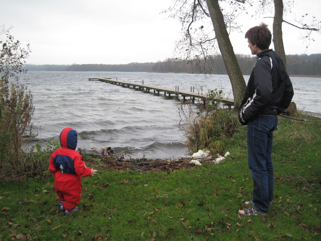 Den ene lå ved en sø, så det tog lidt tid at finde den, for Ellen skulle hele tiden forhindres i at hoppe i søen. Og selvom vi lovede hende at vi kommer tilbage til sommer, så hjalp det ikke helt. Den anden lå i hundeskoven syd for søen og her tog Ellen det meste af turen på fars skuldre, mens hun gik det meste af vejen tilbage til bilen selv. Det tog også noget tid, for hun havde fundet to grankogler, som skulle kastes fremad, samles op og kastes igen… Og så skulle hun op på alle stubbene og hoppe ned igen.