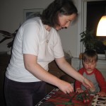 I aften har vi bare hygget, pakket julegaver ind og lagt puslespil.