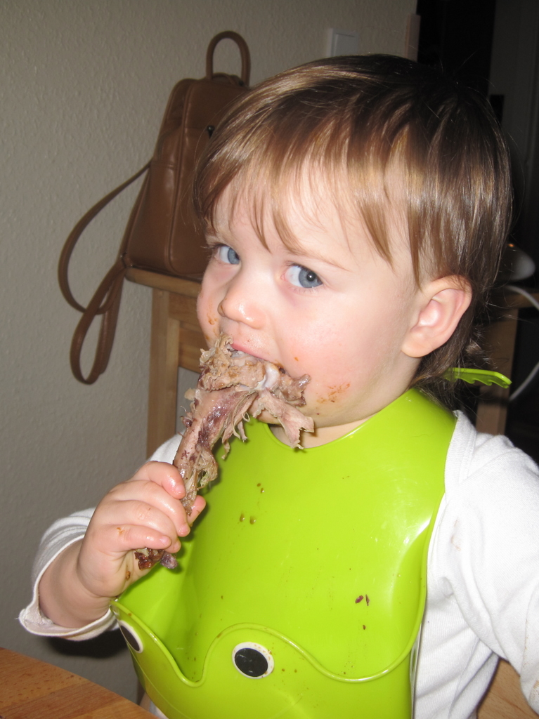 Det barn er lige så madglad som resten af familien – og and er ikke det værste man kan servere for hende.