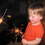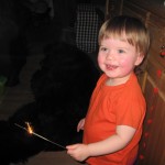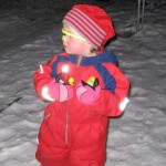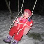 Efter maden gik vi ud og ville fyre lidt fyrværkeri af. Det brød hun sig ikke om. Hun ville gerne se på raketterne nede fra den anden ende af byen, men det skulle ikke for tæt på. Så hun fik en gyngetur og en tur på slæden og så var hun glad.