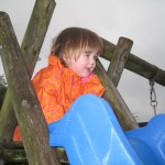 Da hun så kom i vuggestuen og havde afleveret madkassen i køleskabet gik vi ud til de andre. Ellen tussede lidt for sig selv, men så så bedsteveninden hende og så løb de ellers sammen ned i den anden ende af legepladsen hvor de kunne være alene. De rutchede til den stor guldmedalje – og ventede pænt på hinanden, så de kunne rutche ned sammen.