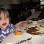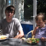 - Så er der frokost – Kåre spiser Ellens Kinderteller og Ellen spiser lidt af Kåres salat.