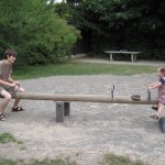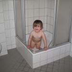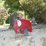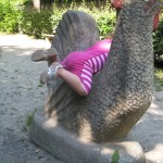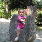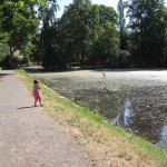 Vi gik ned til den anden ende af den lille park Zwinger lå i og fandt den legeplads der lå der. På vejen så vi på ænder og ællinger i en noget grøn sø. Ellen hyggede sig på legepladsen og hun var ret dygtig til selv at kravle op i tårnet til rutchebanen – det var bare en lodret stige med relativt langt mellem trinnene – men en kryster har hun nu aldrig været.
