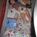 Egentlig havde vi regnet med at skulle pakke mens gøjen sov, men det gjorde hun først klokken 22! Heldigvis nåede Kåre at pakke det meste mens hun ikke sov.
