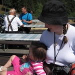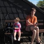 Midtvejs spiste vi vores madpakker – Ellen og Kåre havde æg med og Ellen synes det var sjovt at pille æg. Og det var rigtig sjovt at stå på broen. Pludselig kom hun løbende med hendes brød: “Det er får!” Og ganske rigtigt – hun havde spist af sit brød så det ganske lignede et får.