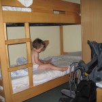 Værelset var et fire-personers værelse med to køjer og vi havde så lånt en barneseng. Vi spændte et lagen op mellem et vindue og den ene køjeseng og sådan fik Ellen sin egen lille hule. Vi havde også vores eget badeværelse med bad.
