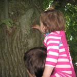 - Ellen prøver at tage cachen ud af træet – det lykkedes ikke, for den sad fast.
