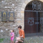 Den første cache var oppe af en laaaaang trappe i en lille park. Der er rigtig mange små grønne områder i Goslar. Den anden var strategisk udvalgt fordi den lå ved en anden legeplads. Her var Ellen ikke eneste barn og tyske børn er ikke spor anderledes end danske: Det de andre børn har, er MEGET sjovere end det man selv har – men andre må ikke røre ens ting! De to sidste caches var lidt kedelige – i hvert fald for Ellen: En micro ved en byport og en micro ved en kirke.