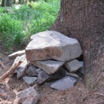 Da de kom ned, skulle vi jo lige finde den cache der lå der oppe. Vi blev lidt forsinket af et blåbærkrat og jeg kan røbe at ungen ikke just var ren bagefter. 🙂 Vi fandt cachen – den var ikke ligefrem ret godt skjult. Og alligevel fandt vi en “ekstracache” 30 meter derfra – de havde ikke kunnet finde den og så havde de bare lagt en ny.