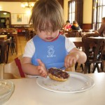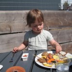 Så blev det tid til at tage hjem. Ellen startede med at underholde en hel forsamling tyske drenge ved at spise nutella fra sit brød med en teske. 🙂