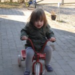 Og så har vi været i haven. Vi har gjort fuglebade rene, fejet så man kan cykle, cyklet, leget i sandkassen og gynget. Og så var det moderen kom i tanke om at hun hellere måtte gå ind igen – blærebetændelse og kulde er ikke så godt sammen.