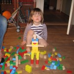 Og da det så blev eftermiddag kørte vi i mødregruppe – igen. 🙂 Denne gang var det mere rigtigt, men Ellen startede med at stå ude på gårdspladsen 10 minutter, hvorefter hun kom ind i gangen og sad og legede med hunden et kvarters tid. Så kom hun endelig ind og legede glad lige indtil vi skulle hjem – og så ville hun naturligvis IKKE med hjem.