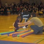 I går var farmor og farfar på besøg og de var med til gymnastikopvisning. Det var Ellen så ikke helt så meget – hun ville ikke være med til at gå ind sammen med de andre og da der var “fællesting” sad hun i et hjørne. Men da der kom redskaber frem var hun straks med. Men det var nu også det jeg havde forventet.