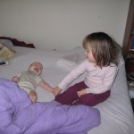 Lørdag morgen ringede mormor og var lidt ved siden af sig selv. Deres computer var i stykker – og så bliver morfar altså helt ulogisk. Så mormor kom ned med computeren og det synes Ellen var hyggeligt. Mig og Ellen skulle i mødregruppe om eftermiddagen – så vi kørte til Hvorslev for at blive mødt af en noget forvirret anden mor – det var da først søndag! Så vi kørte hjem igen og nu havde Ellen ellers lige glædet sig til at skulle ud og lege.