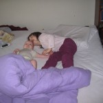 Da jeg så kom ud fra badet og ind i soveværelset så jeg bare en stor bunke dyner – SHIT! Og ganske rigtig – hivende efter vejret fandt jeg Karen liggende under to tykke voksendyner og sin egen babydyne. Heldigvis var der da ikke nået at ske noget – men tænk hvis jeg havde brugt et par minutter mere under bruseren…