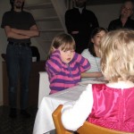Hun var nem nok at have med til fødselsdag. Da de andre børn blev for meget, gik hun bare ovenpå og satte sig med en bog. Og hun legede rigtig godt med Ann Kathrine, så det var bare hyggeligt. Men spise ville hun ikke – ikke engang slik!