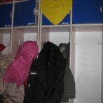 Men jeg fik hende lokket med indenfor og bad hende vise mig hvor hendes rum var – om det ikke var lige ved siden af Ls (bedsteveninden som kom i børnehave i oktober)? Så viste hun mig glad hvor hendes rum var – og der var et stort gult hjerte, hvor der stod VELKOMMEN ELLEN.