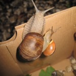 Da vi var på vej i børnehave så vi at der var vinbjergsnegle i indkørslen. Dem ville Ellen gerne have med ned og vise de andre i børnehaven, så vi pakkede dem i en kasse. Og Ellen viste dem stolt til alle og de andre børn synes at de var spændende.