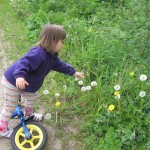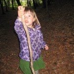 Men vi havde en hyggelig skovtur – vi så en larve og en død bille og vi fandt en lille hjerteballon og en pind. Og lige da vi var ved at være hjemme kørte Ellen så skråt hen over vejen for at komme over til lågen – uden at se sig for eller noget. Så det endte alligevel med lidt skrig og skrål, da hun blev hevet tilbage for at se sig ordentligt for.