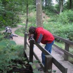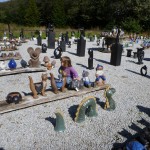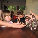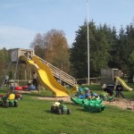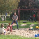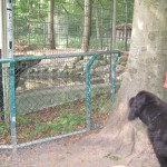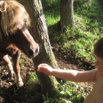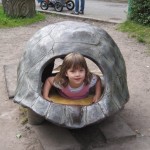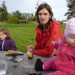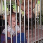 Vi havde madpakke med (en pose rugbrød og en pakke frikadeller og en agurk – overskudsmor slår til igen) og startede med at spise den. Fra legepladsen (hvor der er borde og bænke) kan man mere eller mindre overskue det hele, så Ellen legede mens vi andre spiste færdig. Mens vi spiste var der tre store drenge, der fik trådt et marsvin ihjel – hvis man ikke kan være forsigtig hos dyrene, så må man altså blive udenfor! (Specielt er jeg lidt sur, fordi senere så vi en af drengene gå hen til en ged og skubbe den ned af den træstamme den stod på. Sådan et barn skal altså bare ikke med sådan et sted hen!)